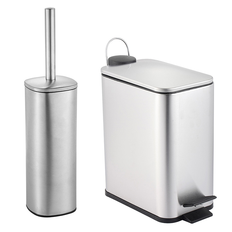 VESTA Σετ κάδος μπάνιου 5lt ορθογώνιος με πεντάλ Soft Close Inox Matte Ασημί
