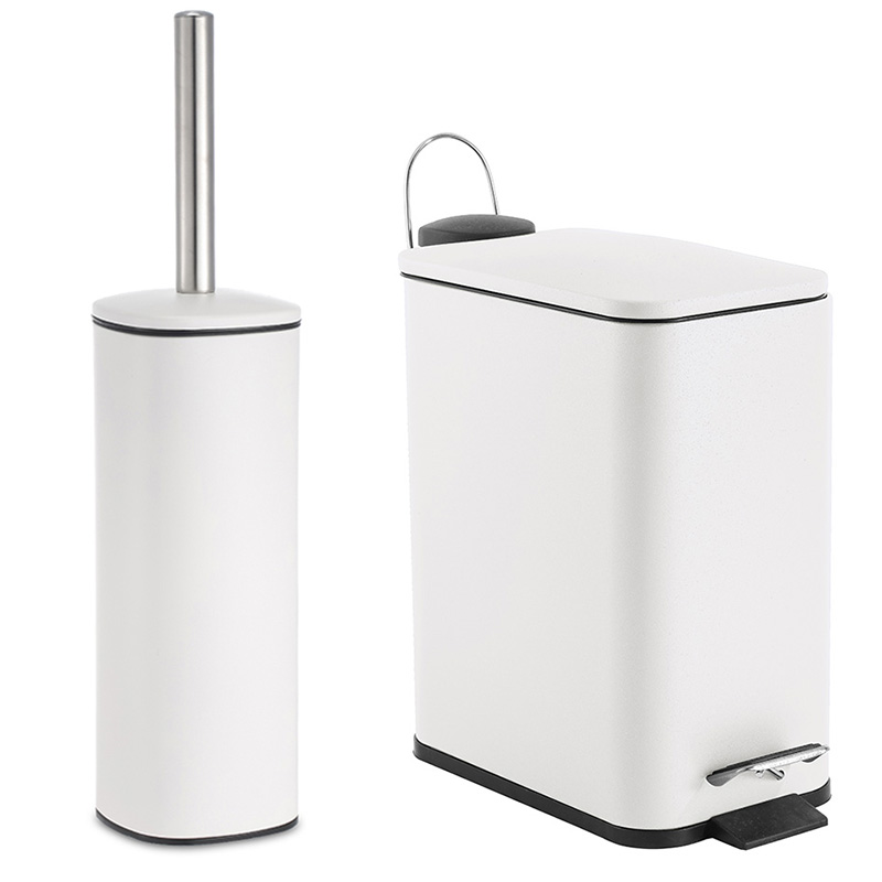 VESTA Σετ κάδος μπάνιου 5lt ορθογώνιος με πεντάλ Soft Close Inox Matte Λευκό