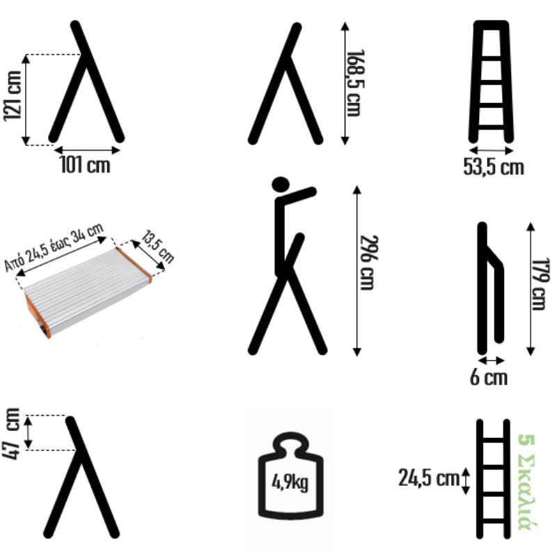 VESTA Σκαλοσκαμπό-Σκάλα 5 Σκαλιά 53.5x101x168.5cm Αλουμινίου