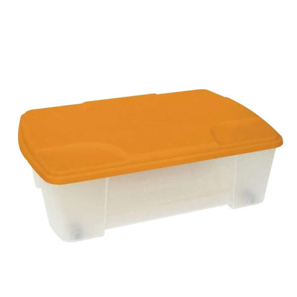 Ορθογώνιο κουτί αποθήκευσης από πλαστικό. Διαθέτει ίσιο καπάκι με πλαίσιο ώστε να στοιβάζεται σταθερά το ένα πάνω στο άλλο.